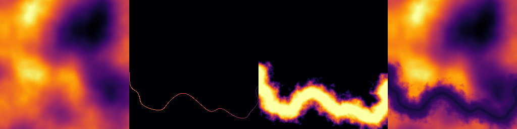 This overloaded function applies a warping effect to the input array based on the downward local gradient direction using a specified mask. The mask controls where the warp effect is applied, with values expected in the range [0, 1]. This function allows for additional customization of the warp effect.